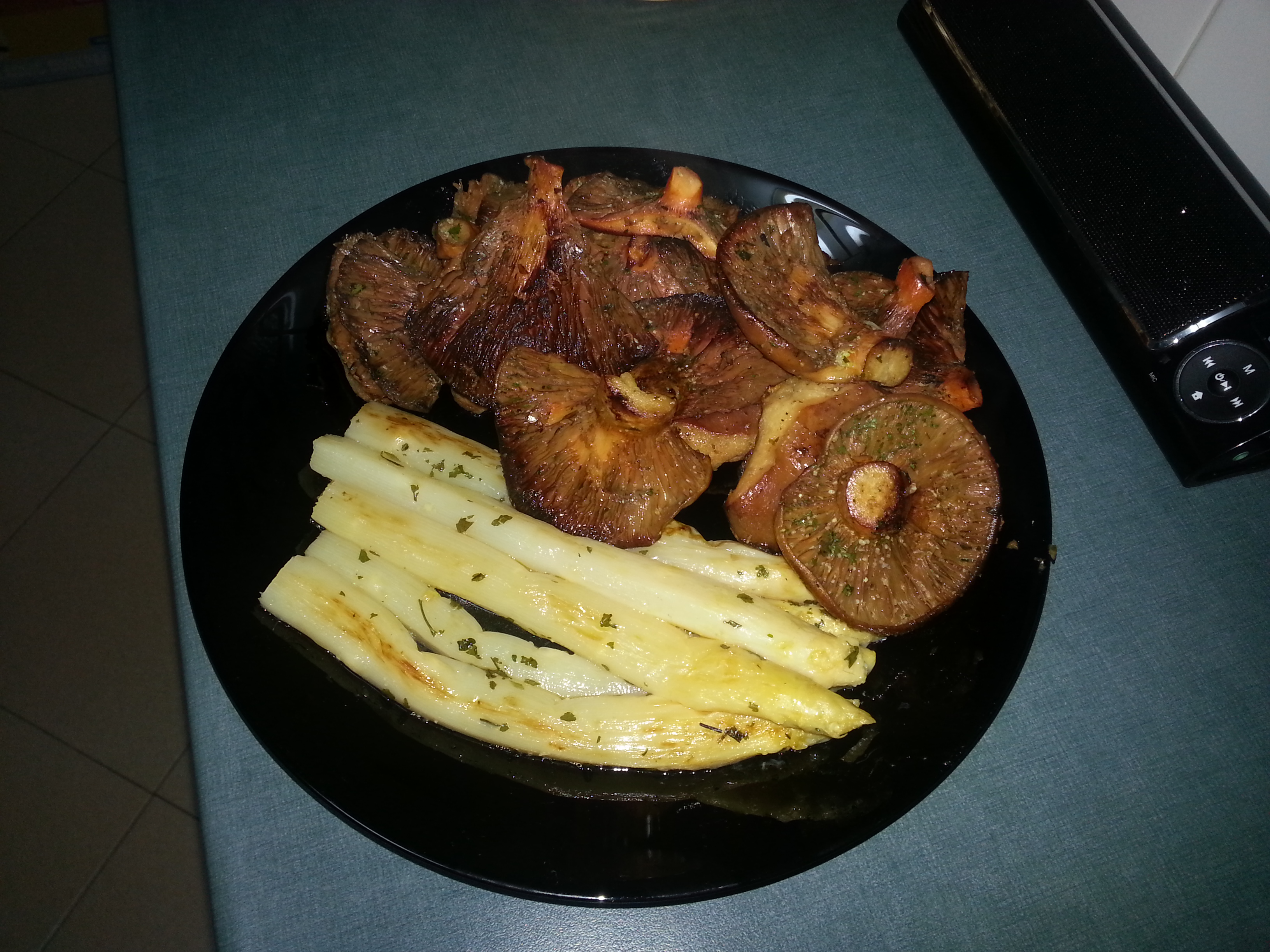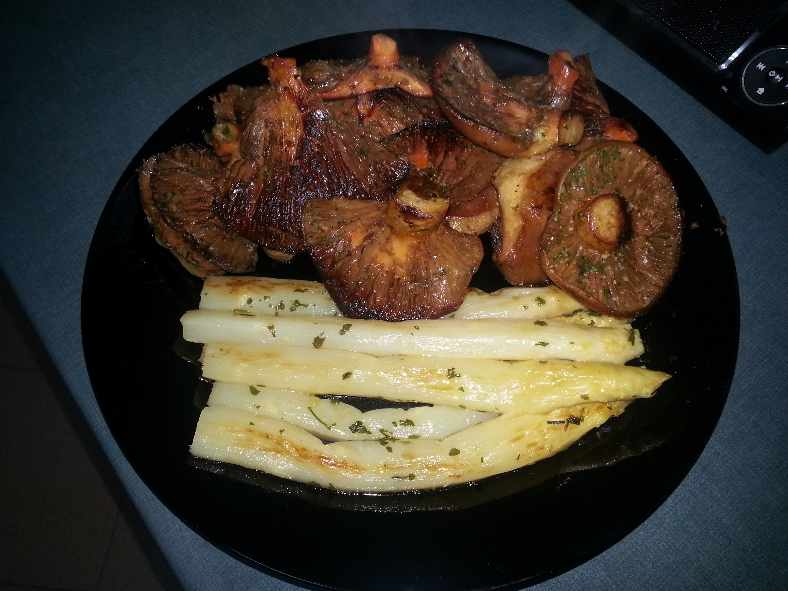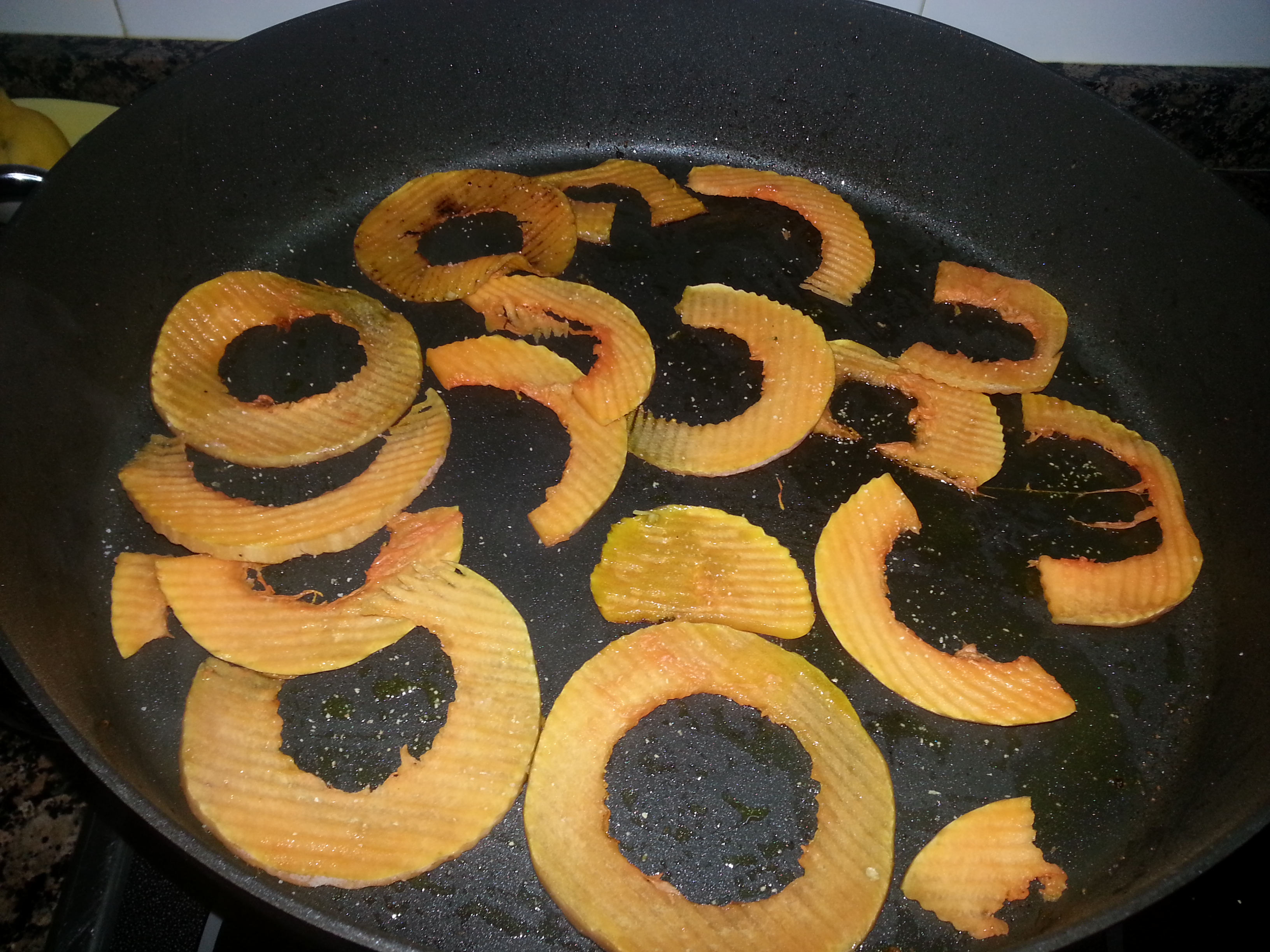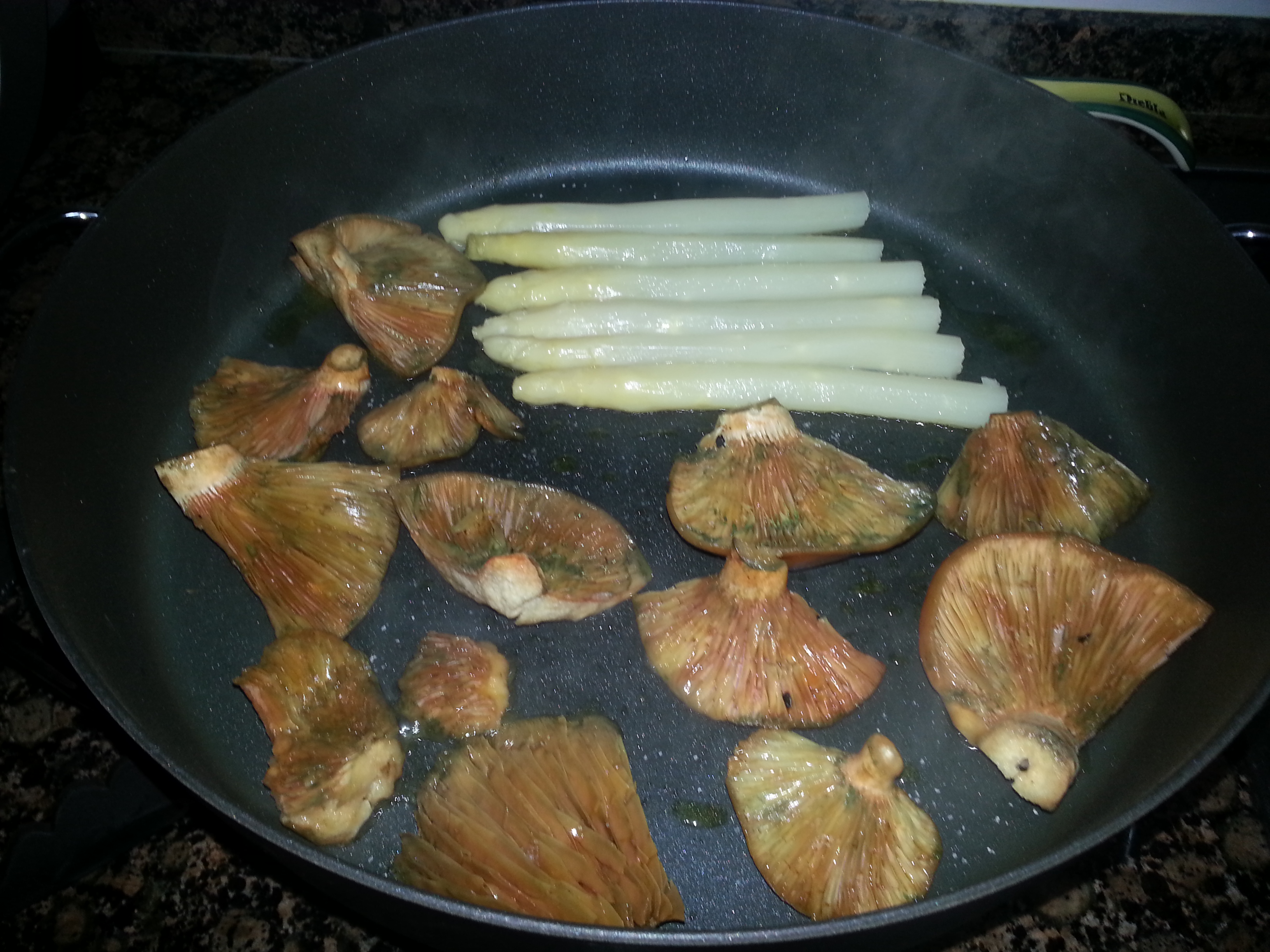 Preparar las verduras para la plancha, como por ejemplo cortar a rodajas finas la calabaza y a trocitos la brocoli, trocear las setas….Simplemente pasar las verduras por la plancha vuelta y vuelta con un poquito de aceite hasta que se hagan con la sal, el perejil y el ajo molido.
