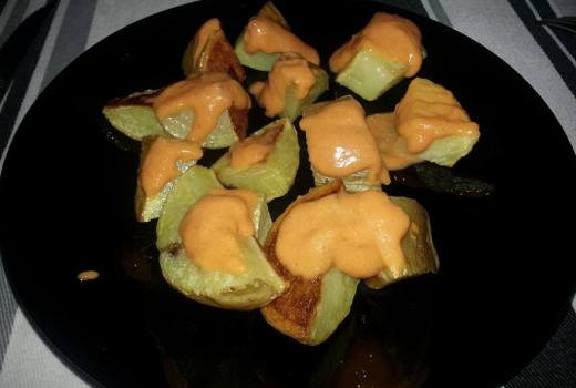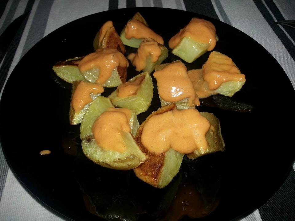 Yo la uso para las patatas….. Unas patatas chiquitas bien lavadas con piel y al horno o freirlas, se les hace unos cortes por la mitad, sal y la salsa por encima…..exito asegurado