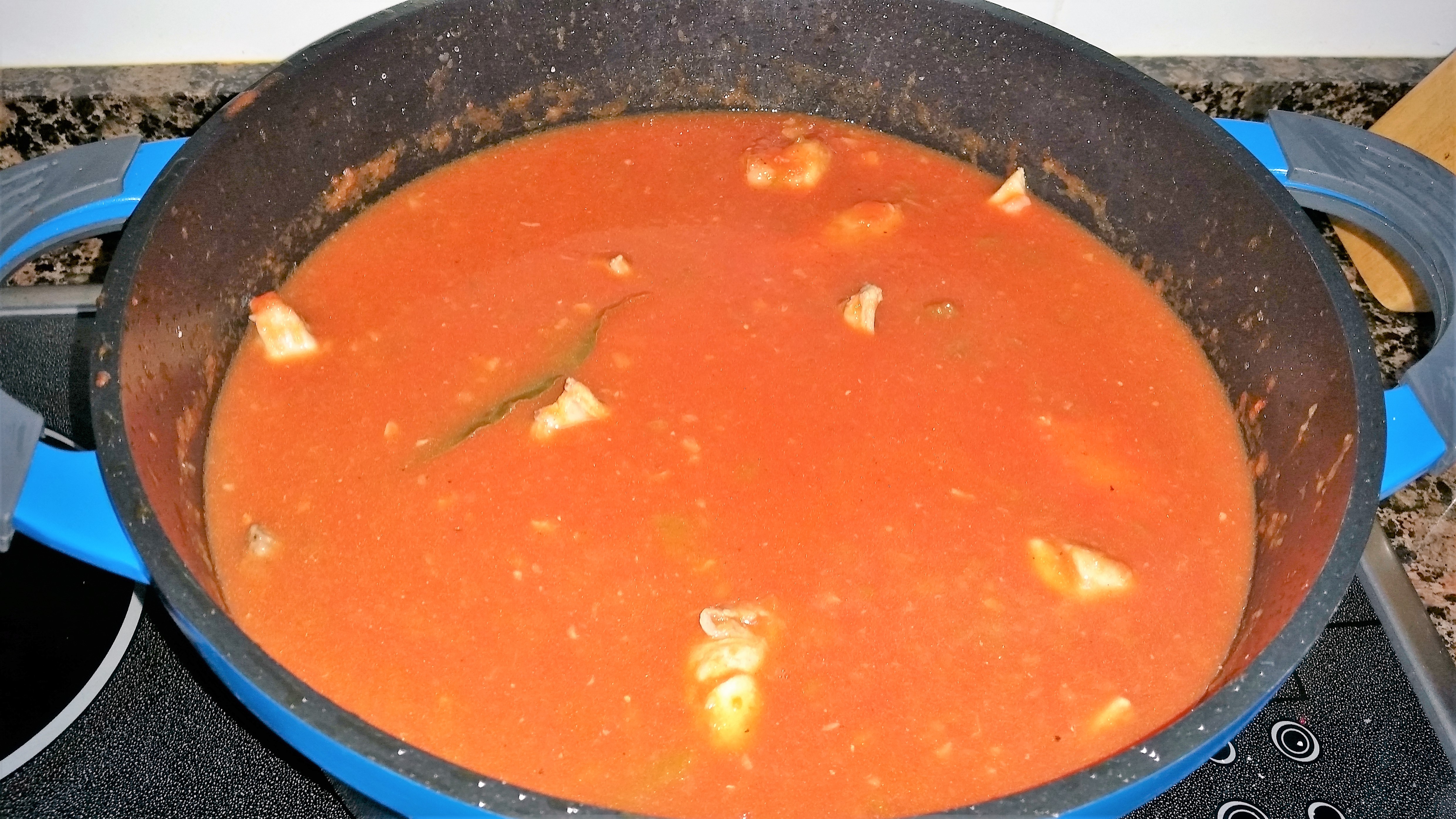 Conejo con tomate y patatas al horno