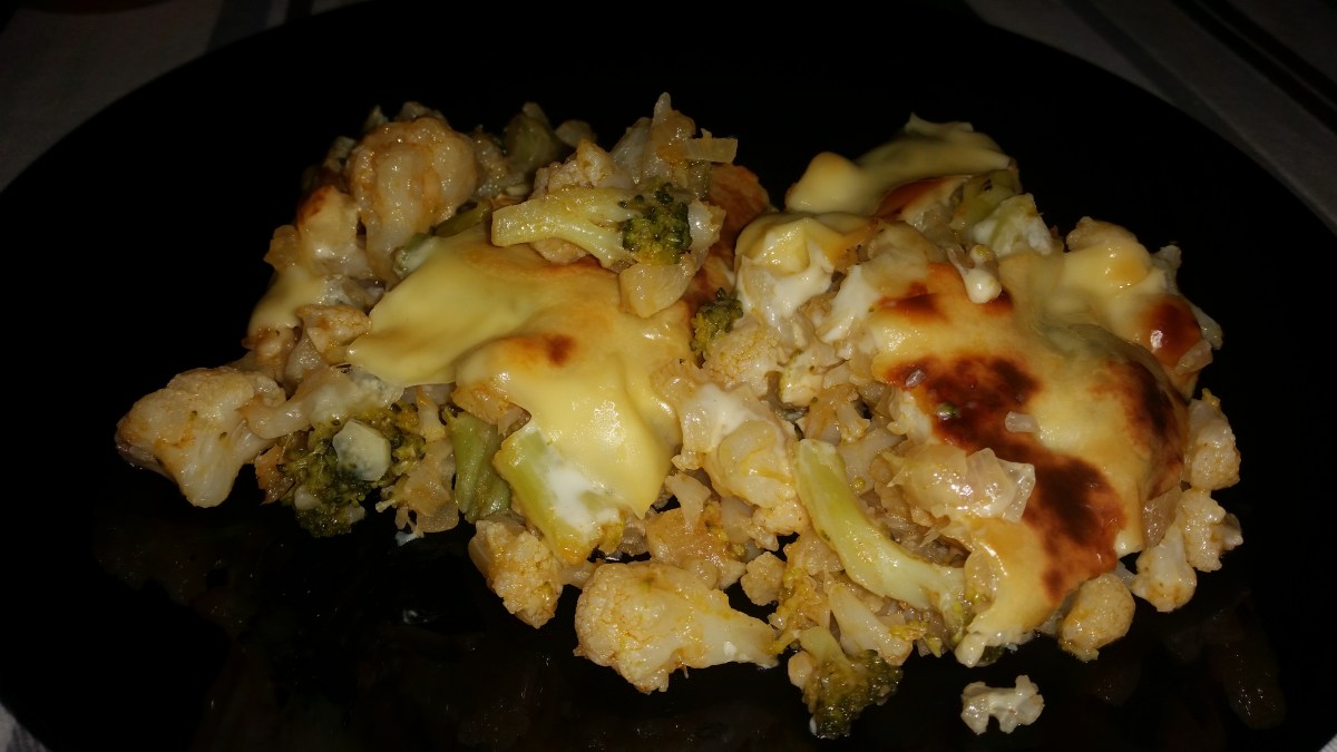 Brocoli y coliflor al pimenton con queso gratinado