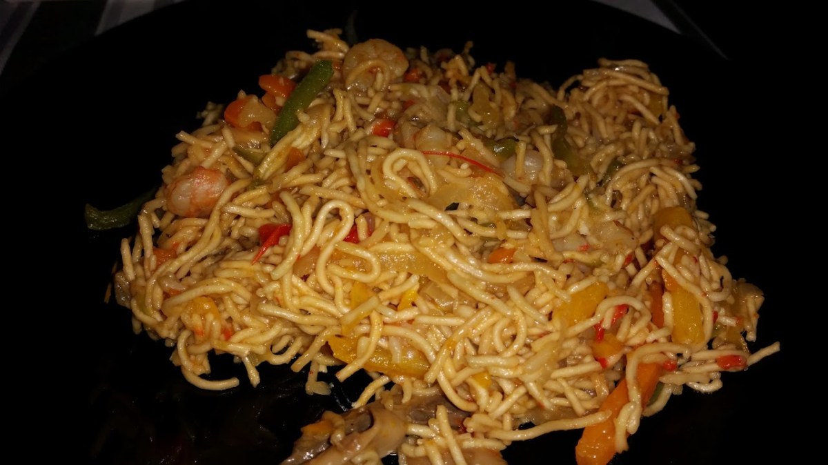 Fideos chinos fritos con gambas