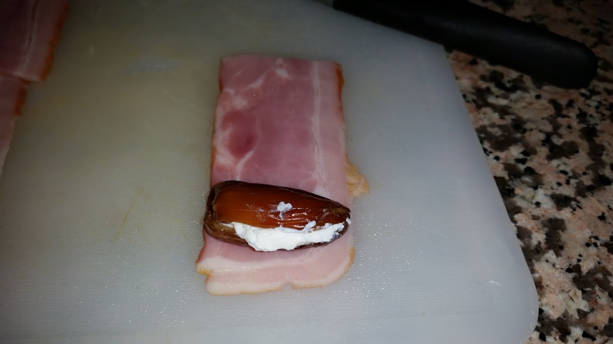Rollitos de bacon y datiles con queso