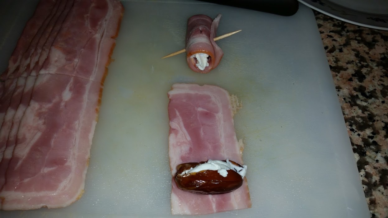 Rollitos de bacon y datiles con queso