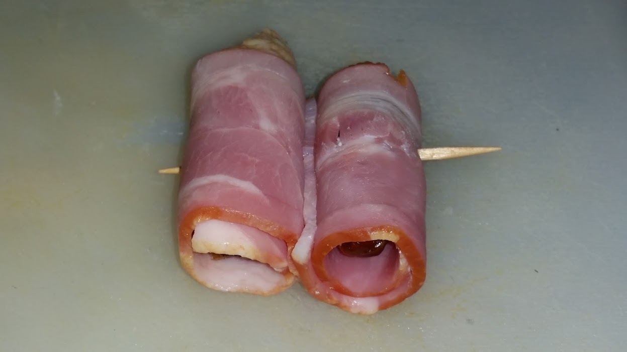 Rollitos de bacon y datiles con queso