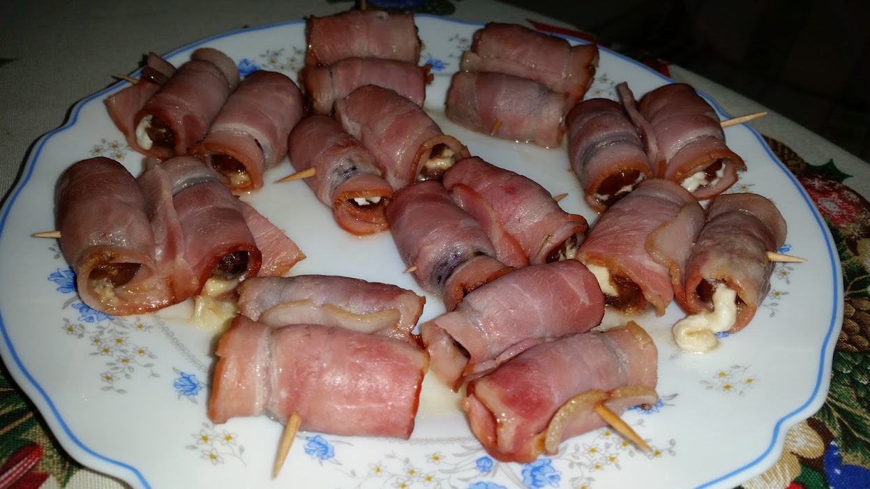 Rollitos de bacon y datiles con queso