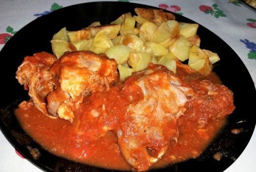 Otra receta para la coleccion y muy tradicional de toda la vida de nuestras madres y abuelas, facil rica y sencilla… Conejo con tomate y patatas al horno. Como siempre digo todo guiso hecho a fuego lento y pendiente de el como se debe exito asegurado. Esta receta se puede hacer de muchas formas e ingredientes, seguramente la habreis oido con algun cambio de ingredientes, o quizas con los mismos y alguno mas. En fin sobre gustos colores. Yo os dejo mi paso a paso como siempre.
