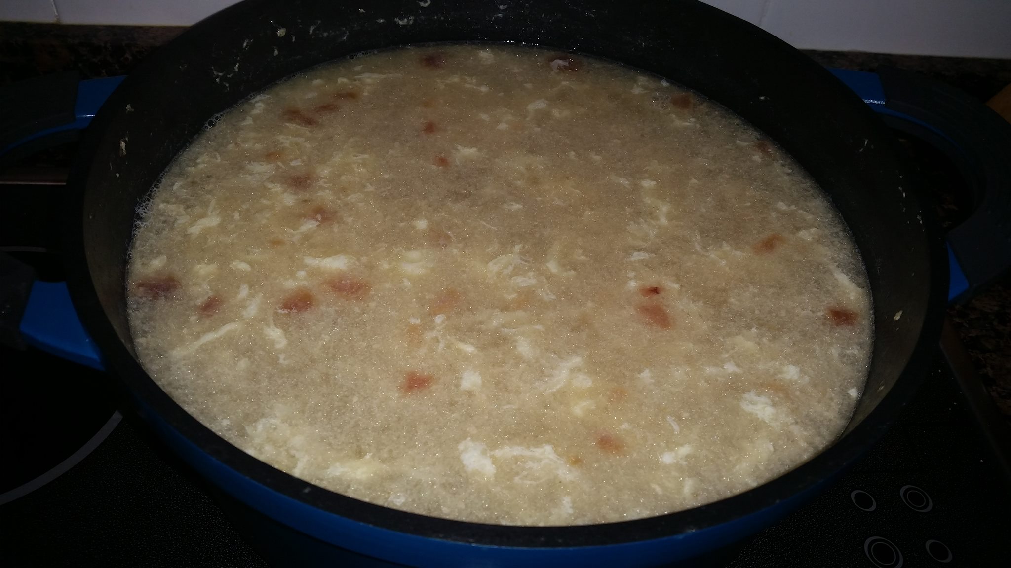 Como ya comente en otra receta de tagarninas, es una planta que crece a lo ancho a ras de suelo, con lo cual suele tener mucha tierra y hay que lavarlas y limpiarlas muy bien. Una vez bien limpias cortadas a trocitos de unos dos dedos o así las pondremos a hervir en una cazuela con agua y una poca sal unos 25 o 30 minutos, para que se pongan tiernas pero no del todo pues luego seguirán cociendo en el guiso. Una vez hervidas las escurrimos y reservamos el caldo. Por otro lado cortamos los dientes de ajo en trozos grandes y el pan y los freímos en aceite de oliva, seguidamente haremos lo que se llama el esparragado, para lo cual batimos con la batidora y reservamos los trozos de pan fritos, los dientes de ajo fritos, un vasito de caldo de cocer las tagarninas, una cucharadita de comino, una poca sal y un chorreón de vinagre de vino. Batimos y según el espesor que tenga añadimos mas caldo o no de la cocción. Una vez terminado el esparragado lo reservamos. En la misma cacerola y en el aceite que nos quedo de freír el pan y los ajos añadimos las tagarninas bien escurridas y los trocitos verdes del puerro, esto ultimo es opcional si os gusta y tenéis en ese momento. Sin puerro se puede hacer perfectamente, a continuación sofreímos unos minutos moviéndolas de vez en cuando, seguidamente añadimos el esparragado reservado anteriormente y dejamos que se mezcle bien y reduzca el caldo un poco. Por ultimo ya solo nos quedara un rato antes de comer añadir unos huevos y poner la tapa para que se nos hagan con la misma verdura. Yo los puse enteros, tambien se podrían batir y añadir, mezclar un poco y listo para comer. Todo un manjar que me recuerda una vez mas a los platos de mis maestras en la cocina y que os dejo para continuar con la tradición. Esperando que os guste hasta la próxima