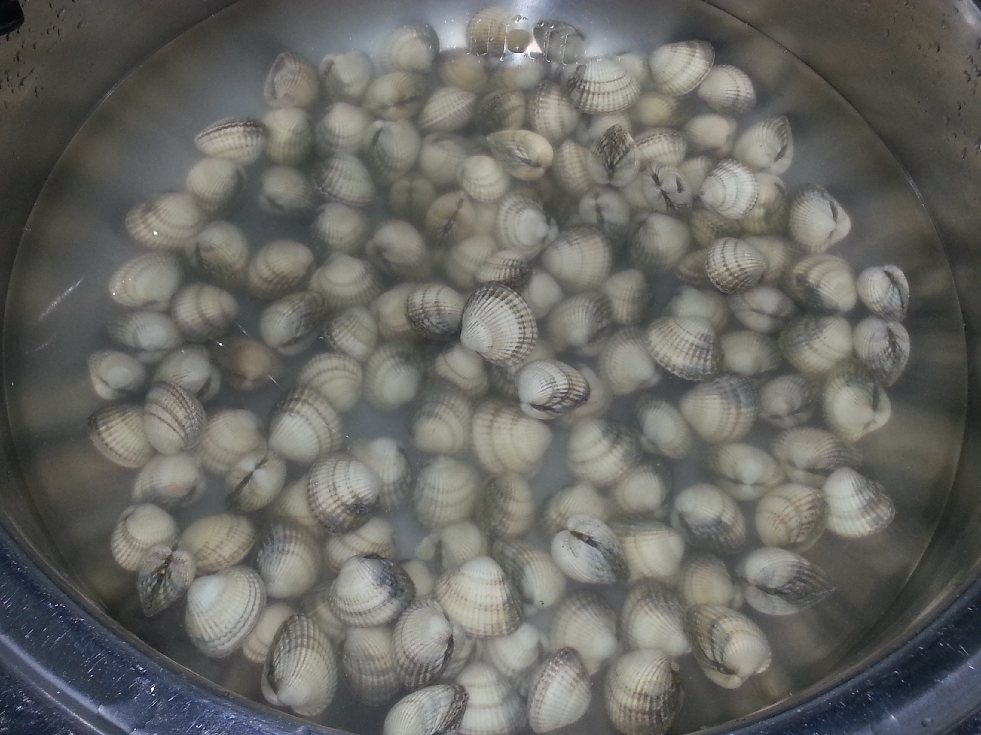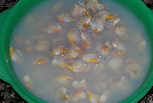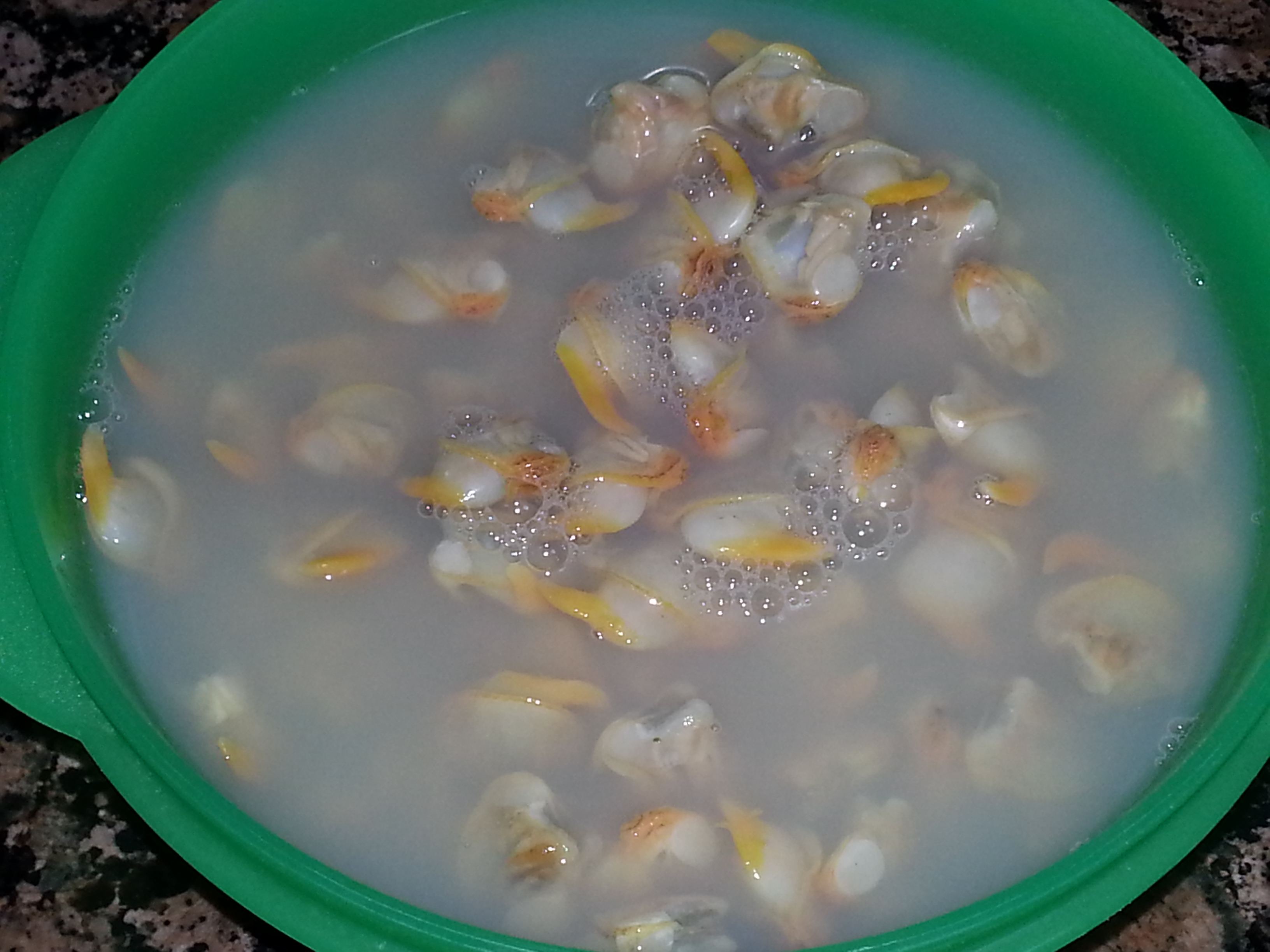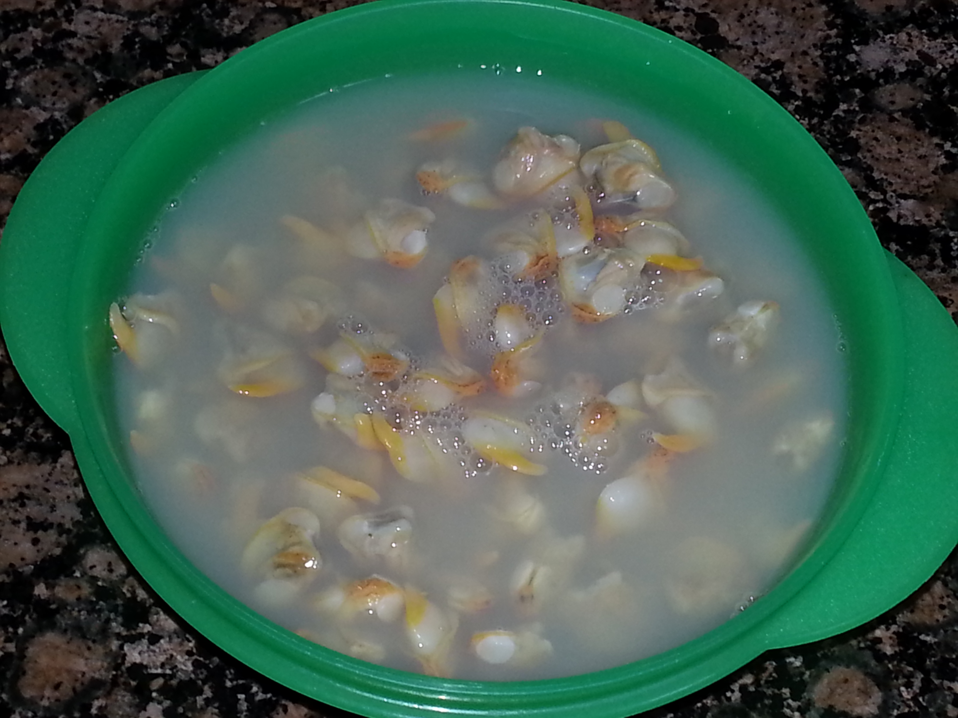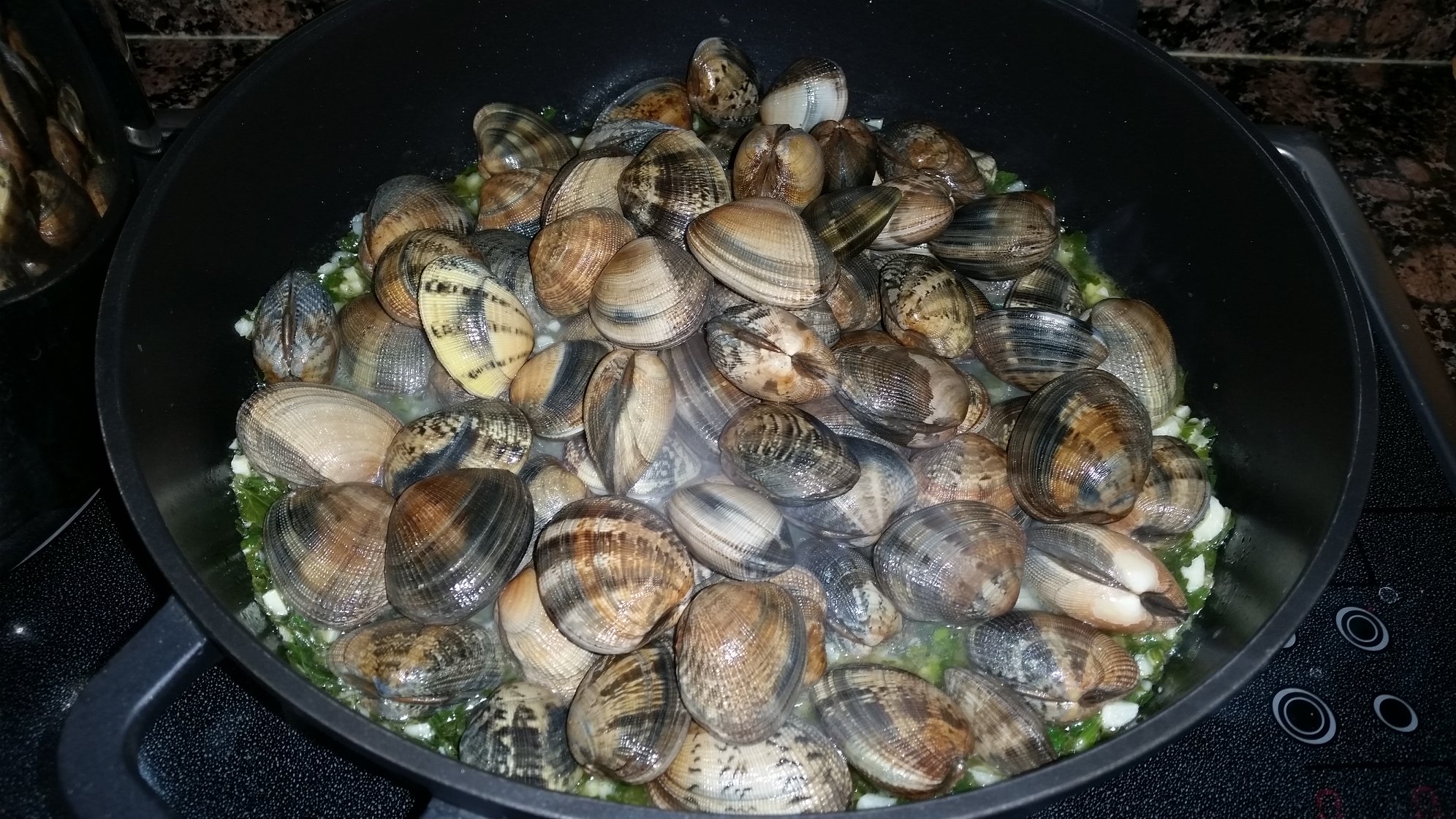 Lo primero que hacemos es dejar las almejas en agua con un puñado de sal, para que suelten la tierra, por otro lado vamos picando el perejil muy picadito y los ajos, en una saren empezamos a sofreir los ajos, cuando ya empiezan a dorarse echamos el perejil y el vino, se deja reducir un poco y se le añaden las almejas y una poquita sal.