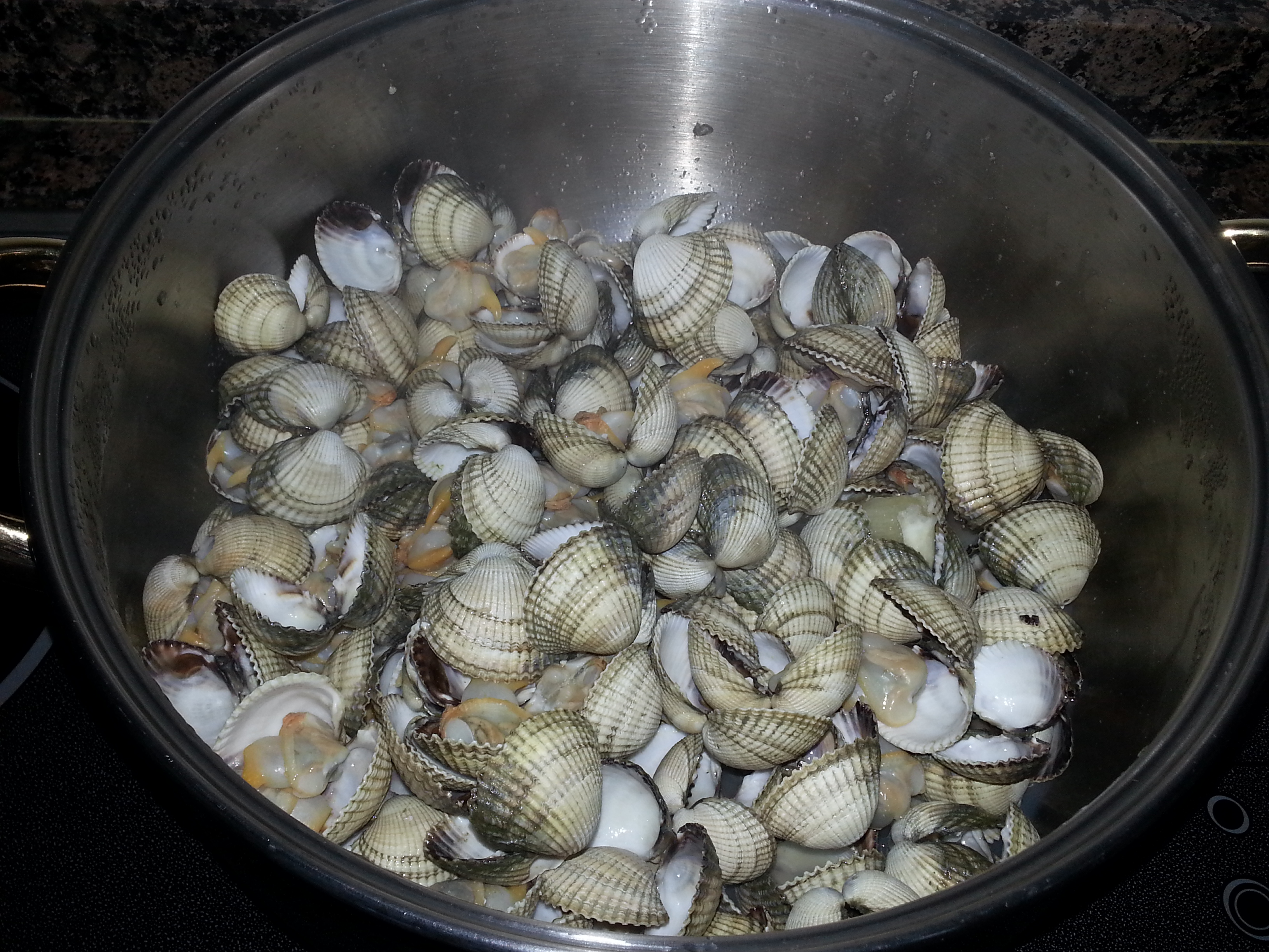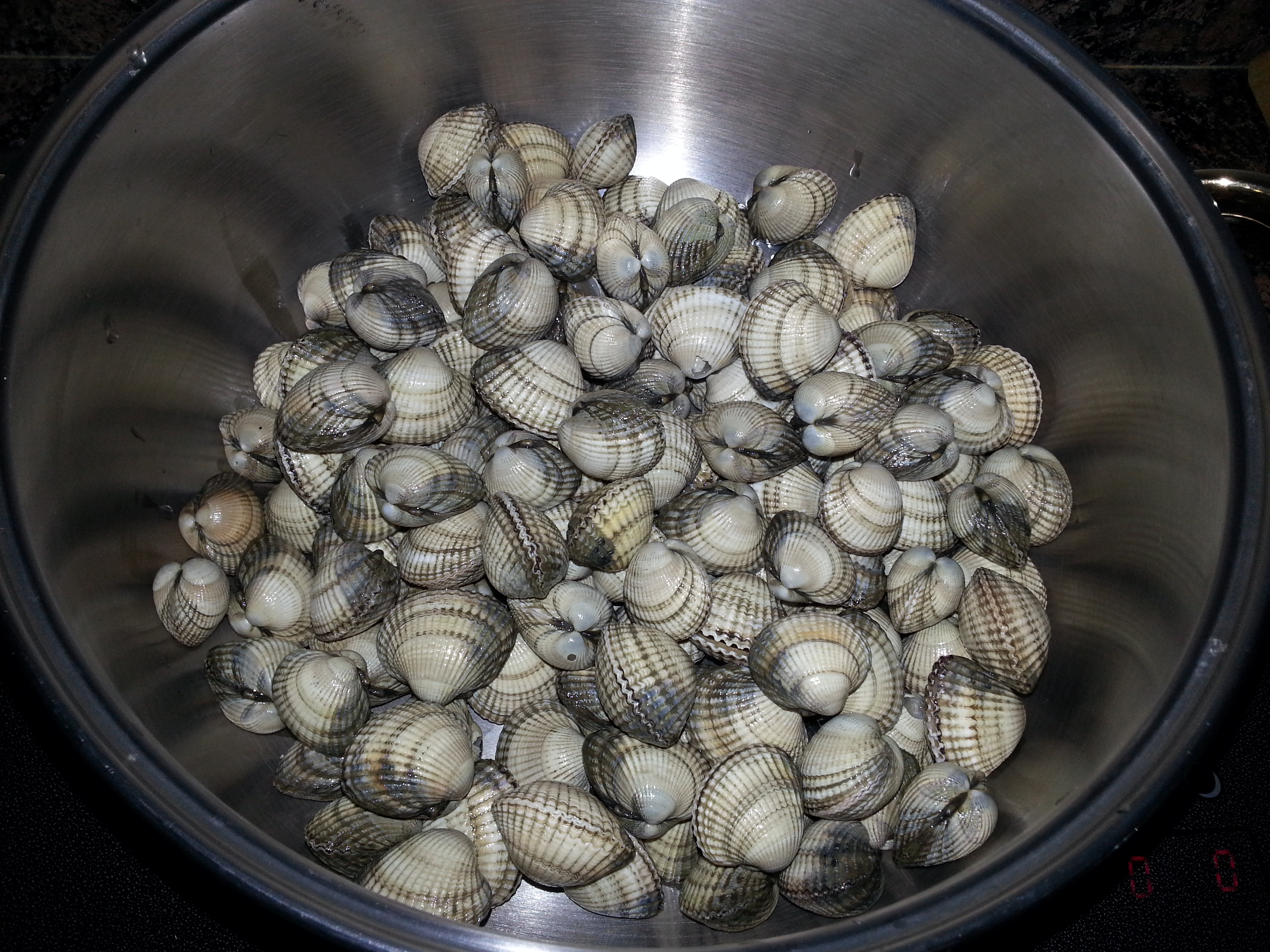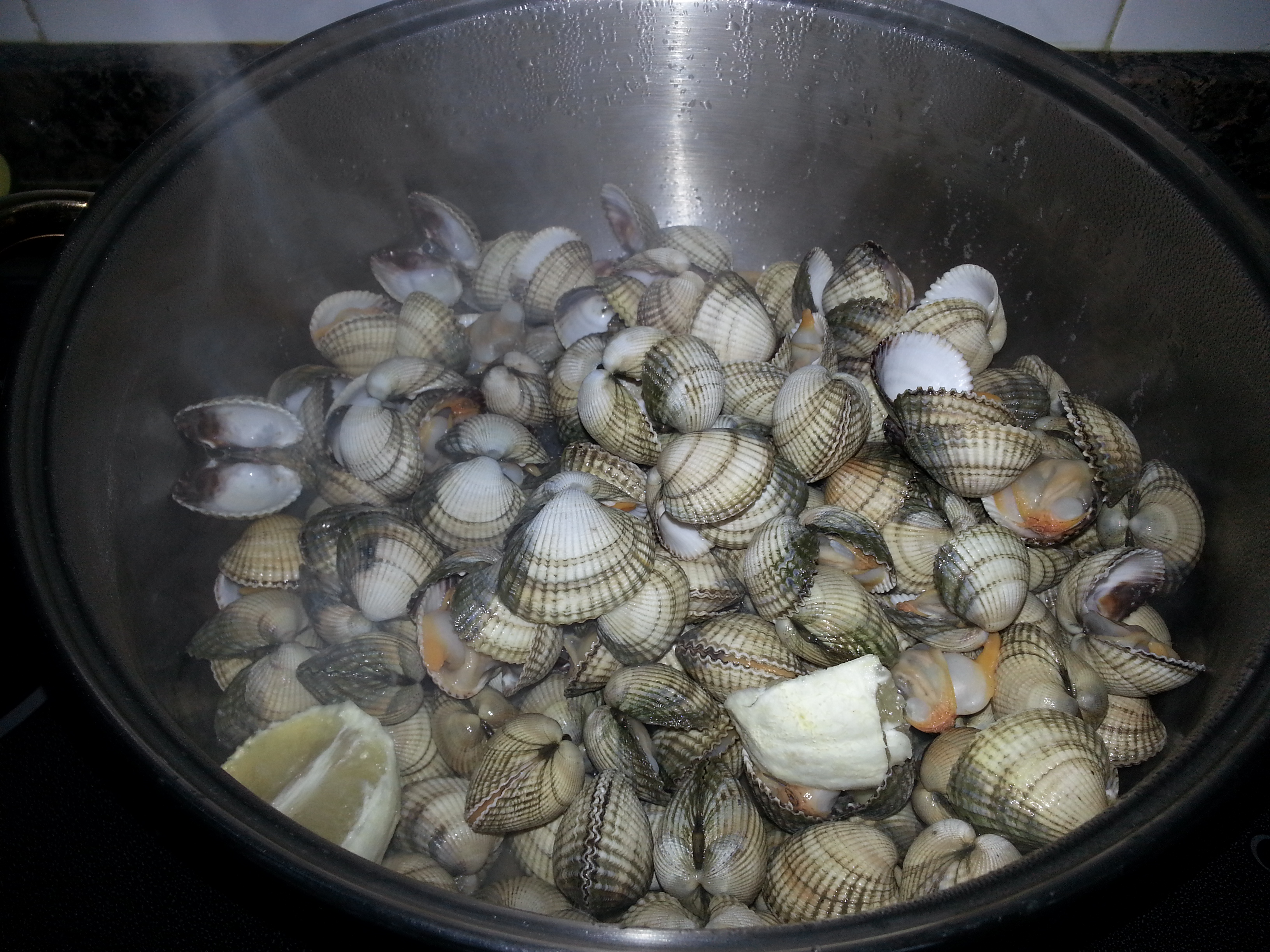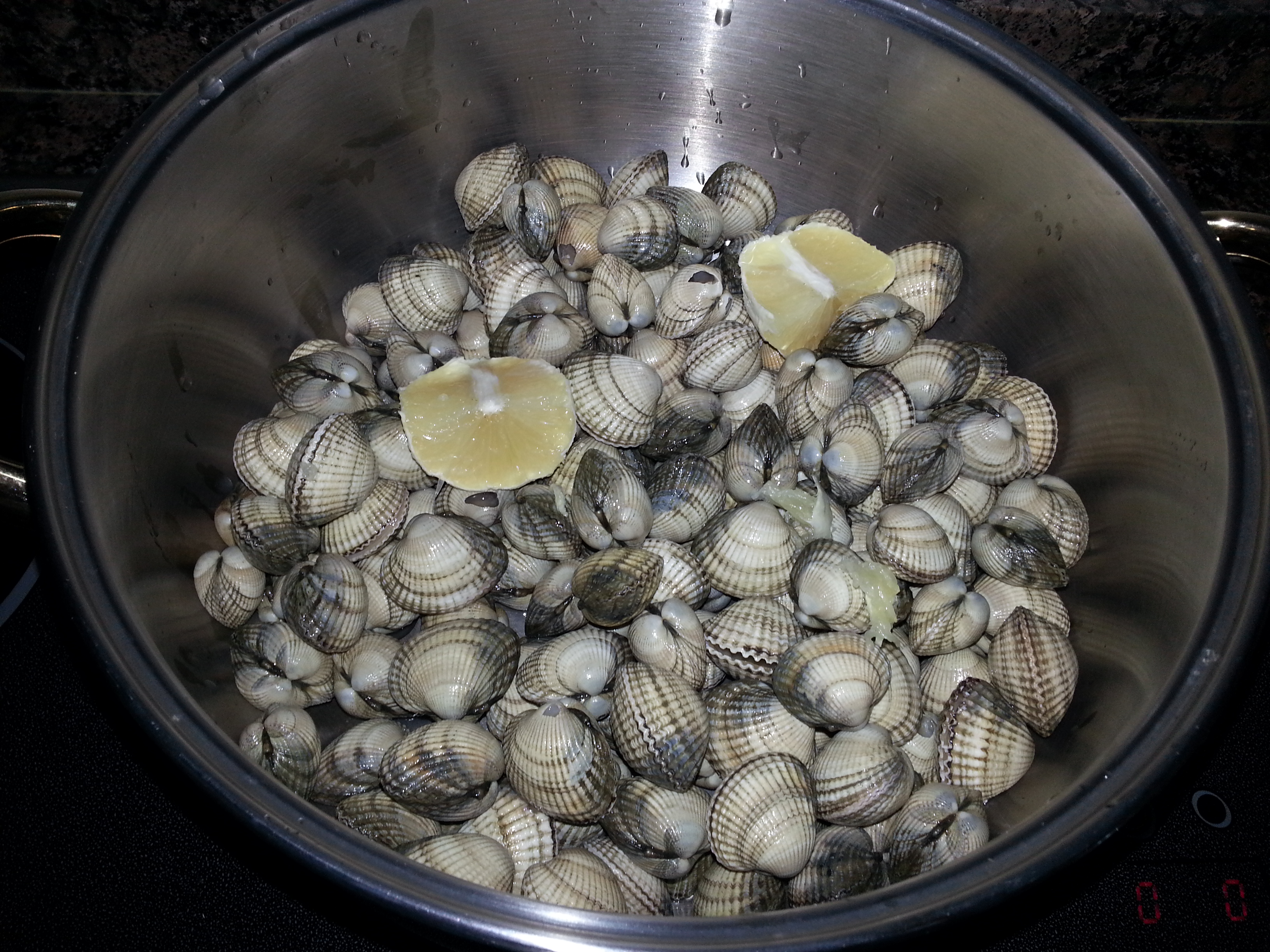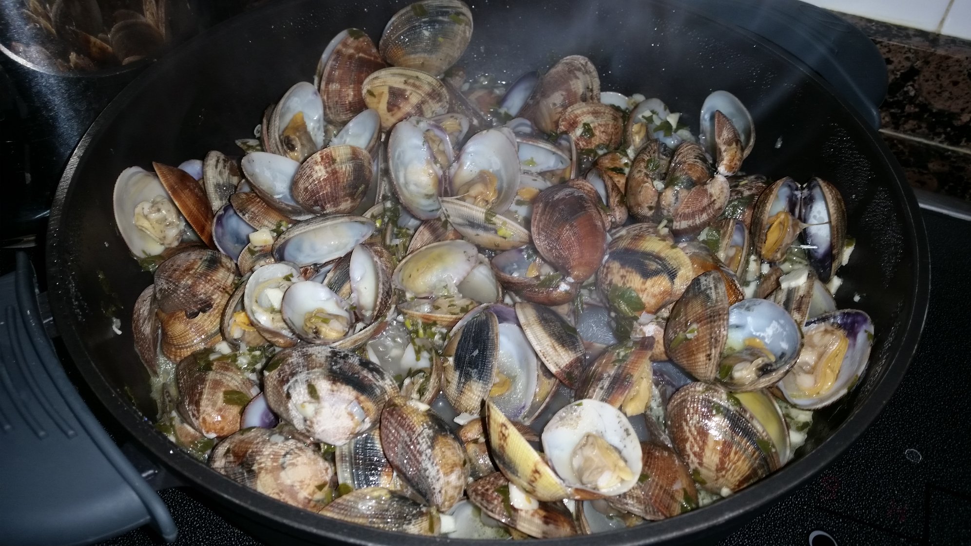 Si añadimos las almejas desde el principio se encogen mucho, por eso lo suyo es dejar reducir un poco el vino antes, asi tienen mejor presencia y estan igual de ricas