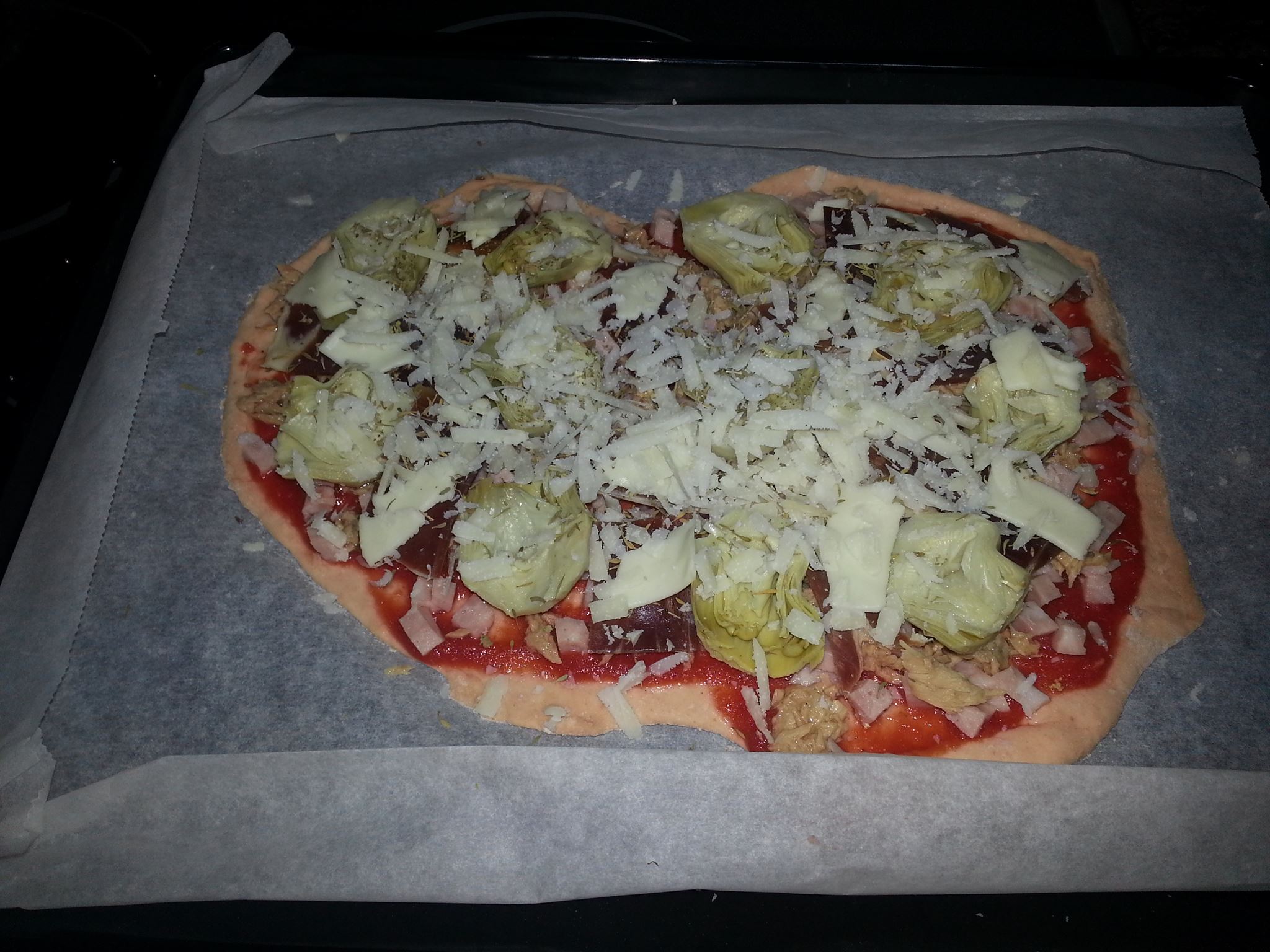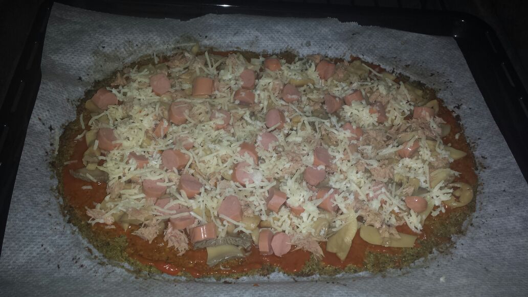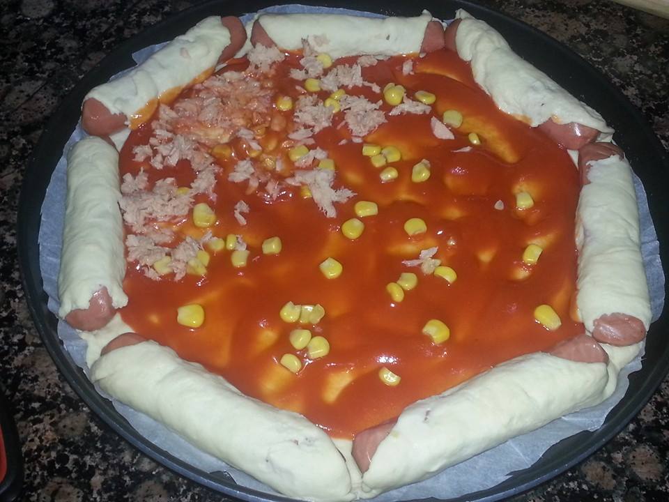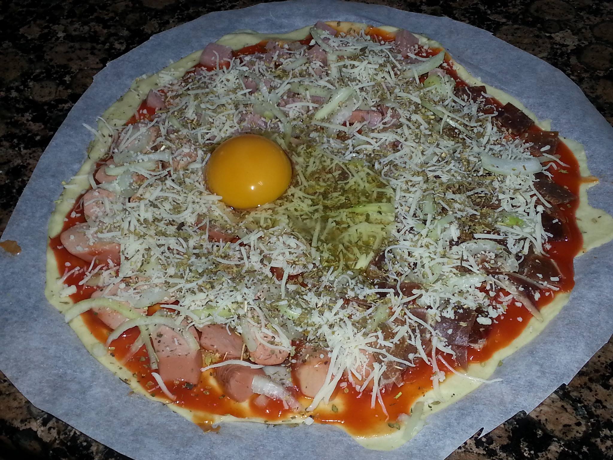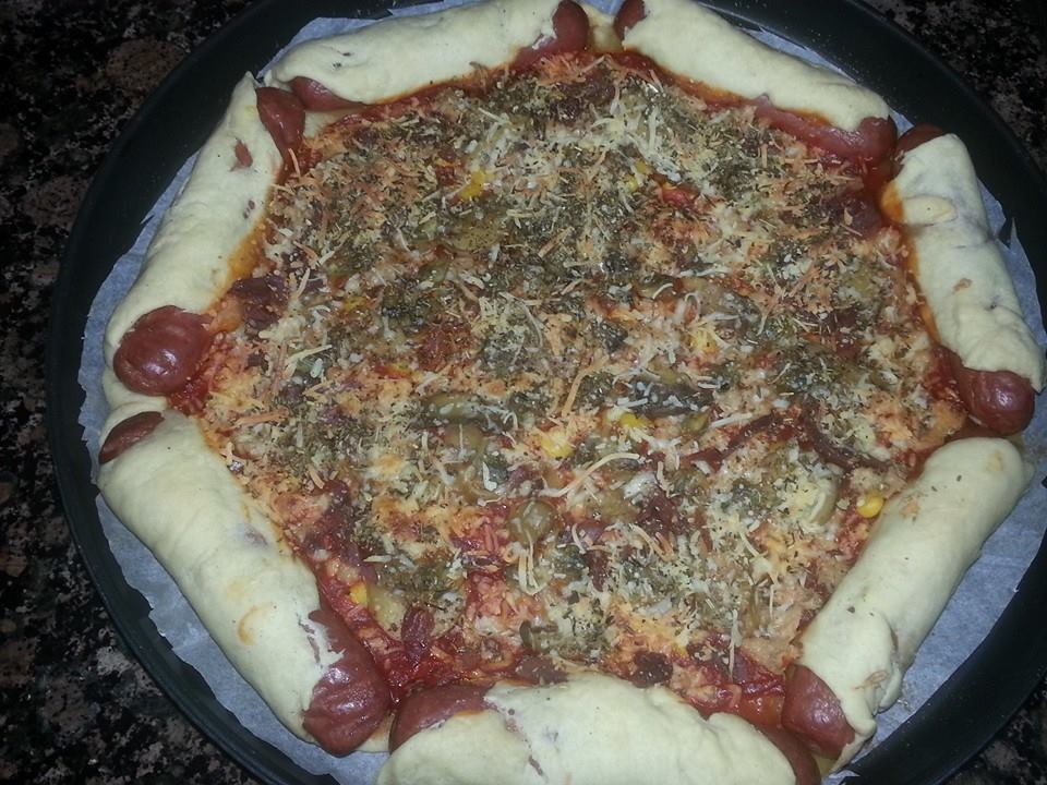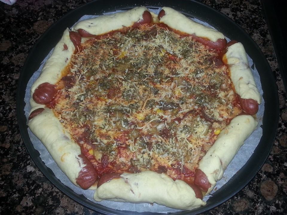 Lo primero que haremos es cortar a filetes las dos mitades de la pechuga, si no disponeis de ellas ya cortadas por el carnicero. Ponerlas al horno un ratito mientras se va preparando el picado de cebolla, pimiento, jamon de pavo y el chorizo o pasarlas un poco en una sarten, mas que nada para que se selle por fuera pero sin terminar de hacer. En un bol mezclamos el tomate con el resto de ingredientes y rellenamos los filetes a modo de pizza, por ultimo las cubrimos con queso rallado y listo para el horno hasta que se funda y dore el queso