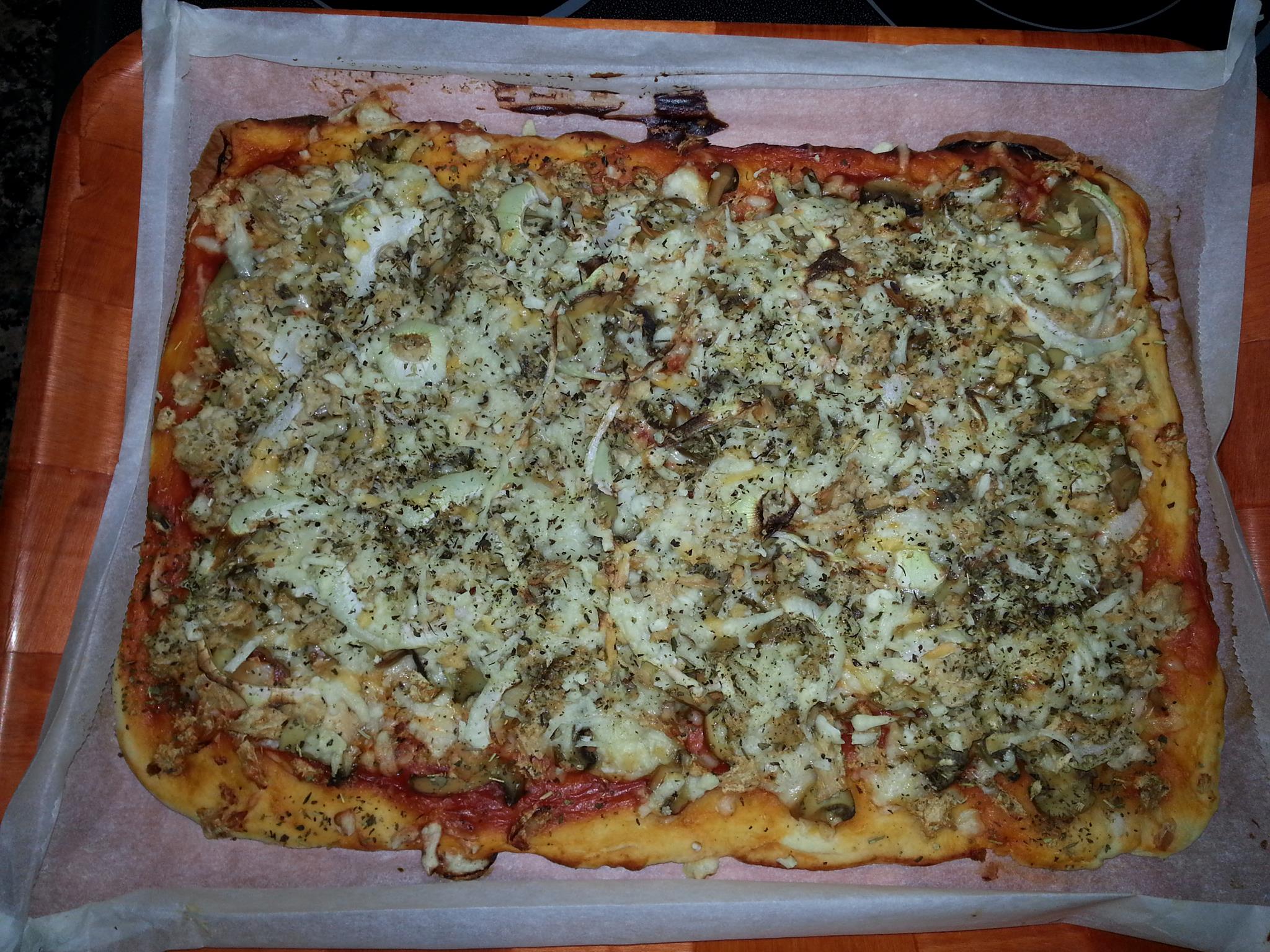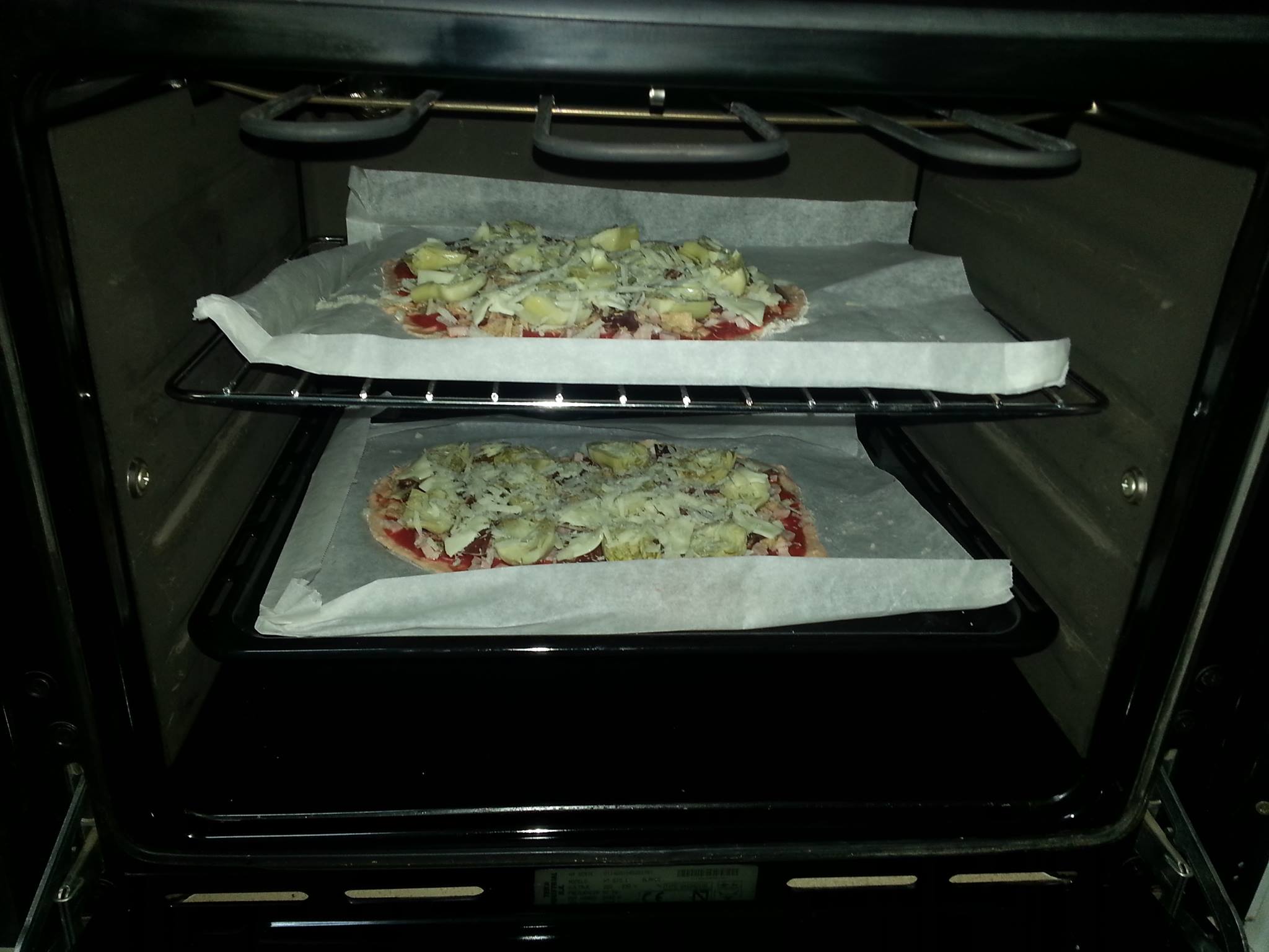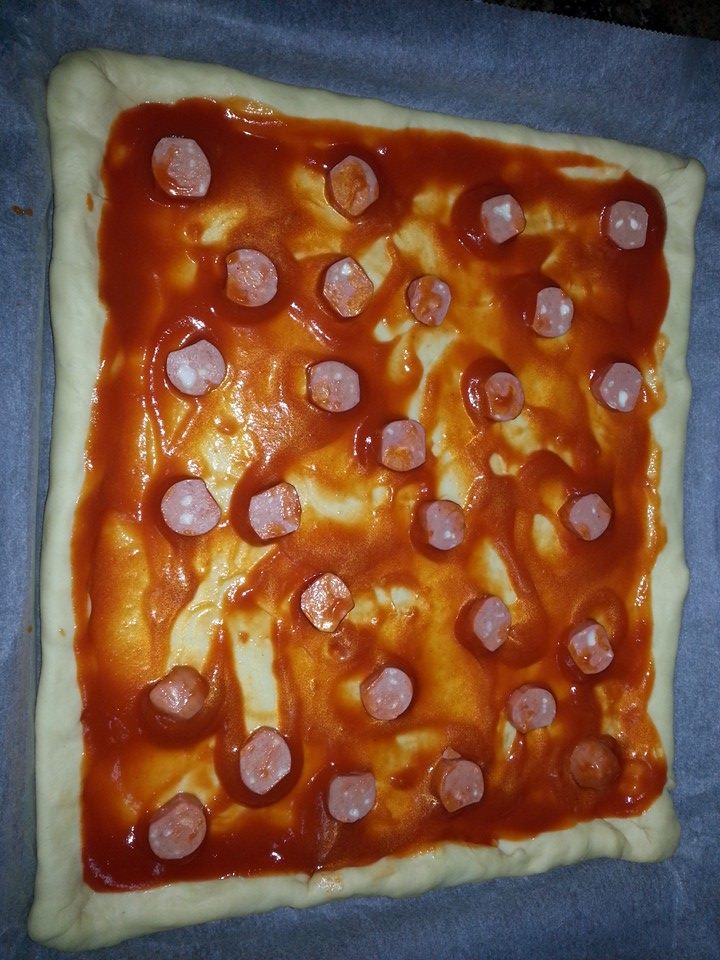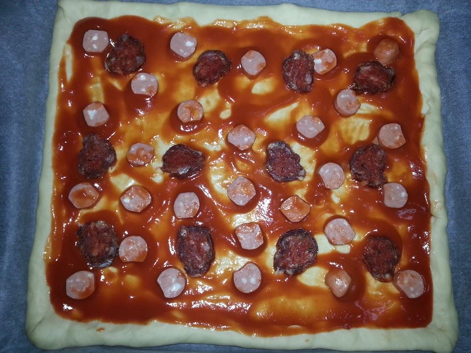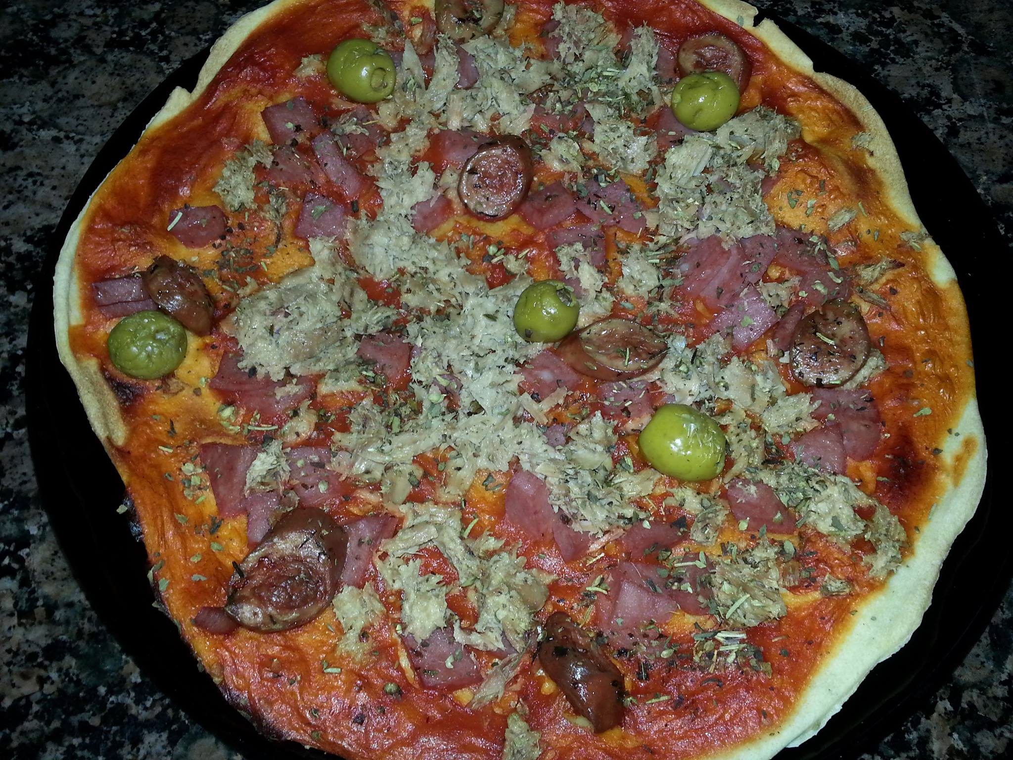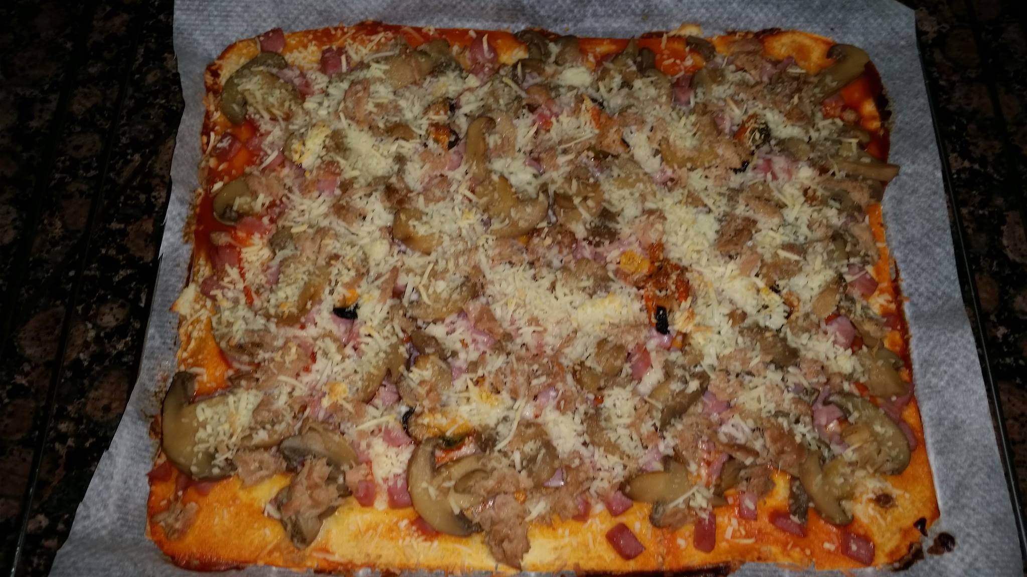 Lo primero que haremos es cortar a filetes las dos mitades de la pechuga, si no disponeis de ellas ya cortadas por el carnicero. Ponerlas al horno un ratito mientras se va preparando el picado de cebolla, pimiento, jamon de pavo y el chorizo o pasarlas un poco en una sarten, mas que nada para que se selle por fuera pero sin terminar de hacer. En un bol mezclamos el tomate con el resto de ingredientes y rellenamos los filetes a modo de pizza, por ultimo las cubrimos con queso rallado y listo para el horno hasta que se funda y dore el queso