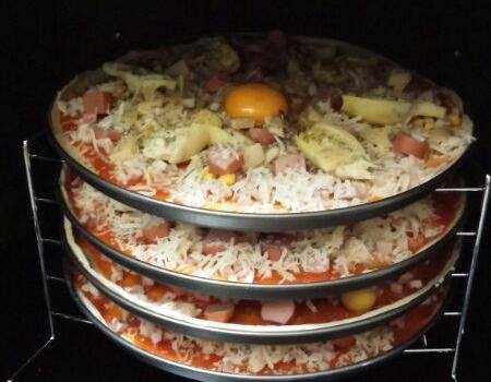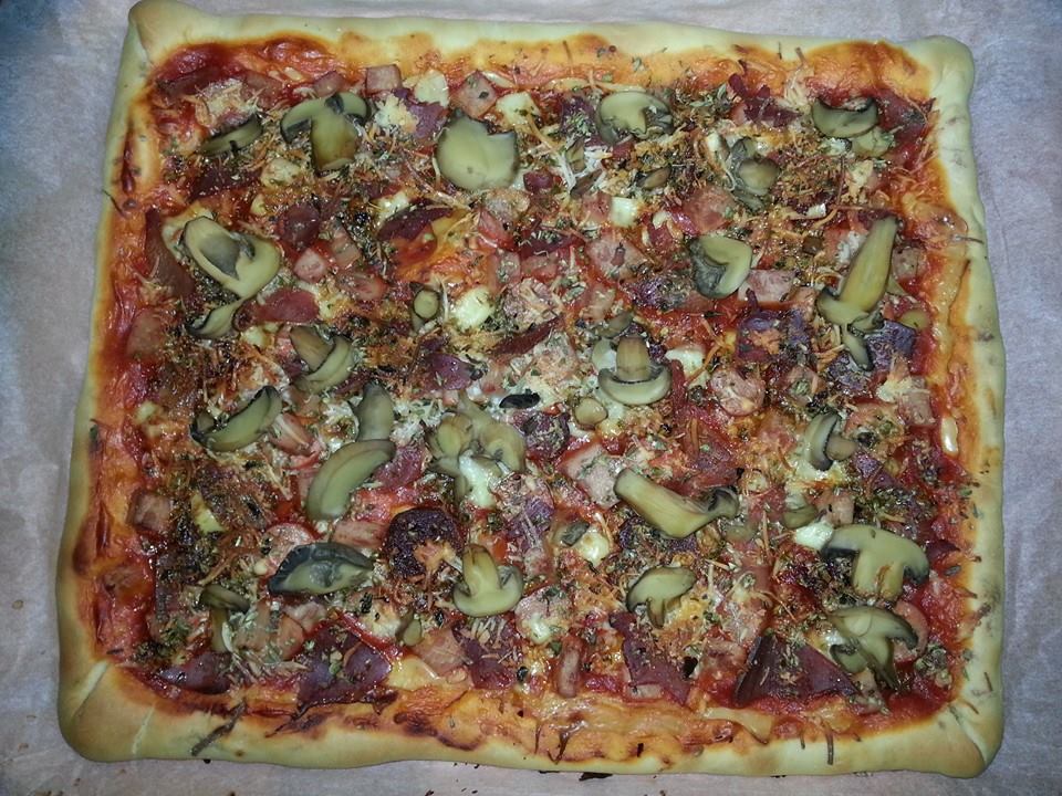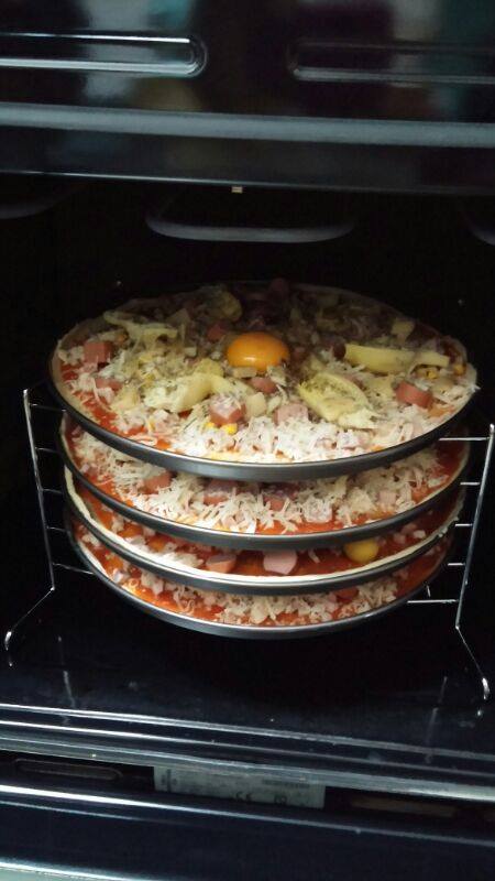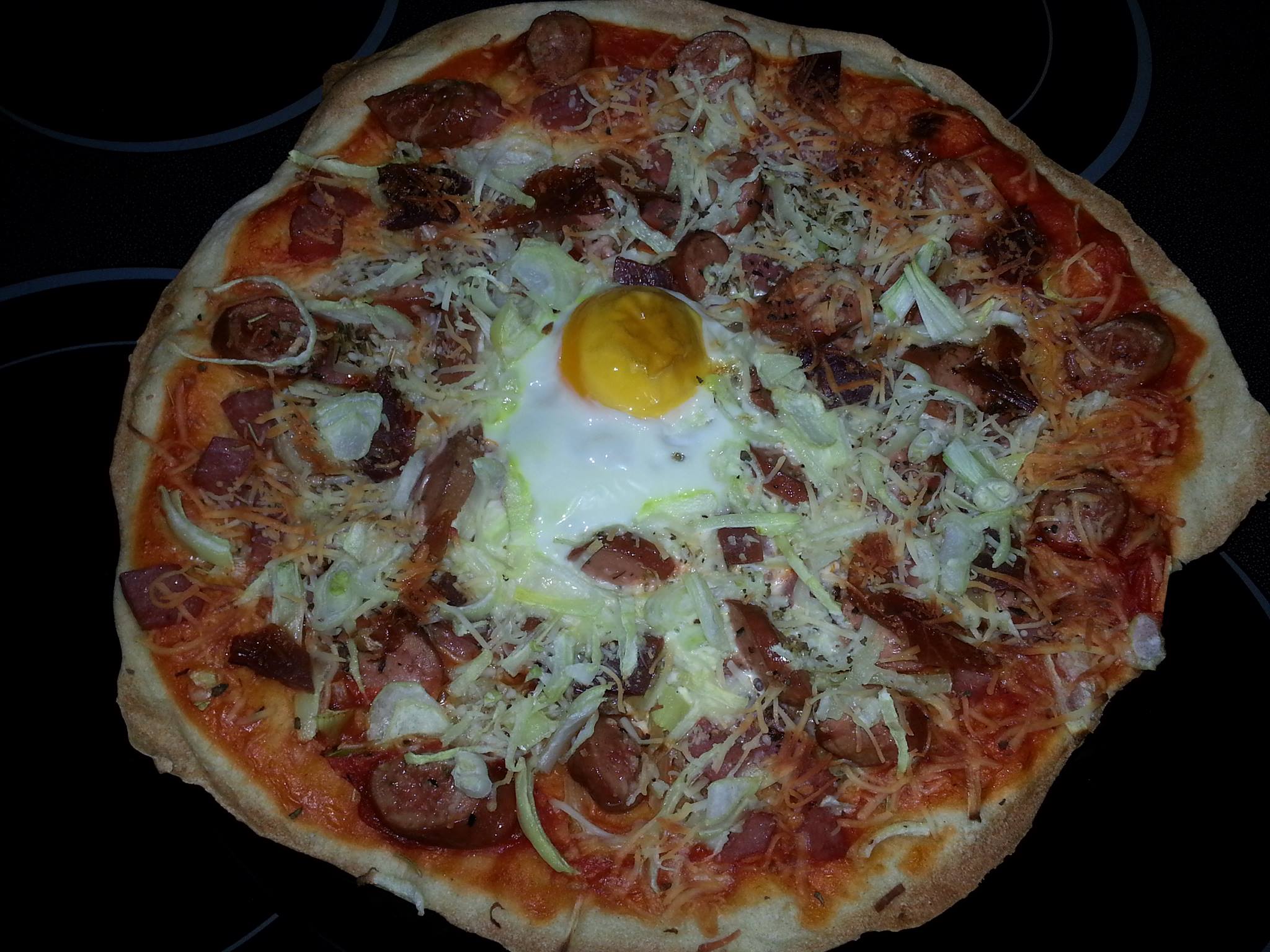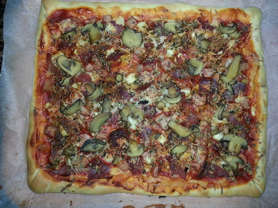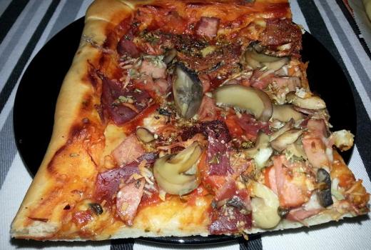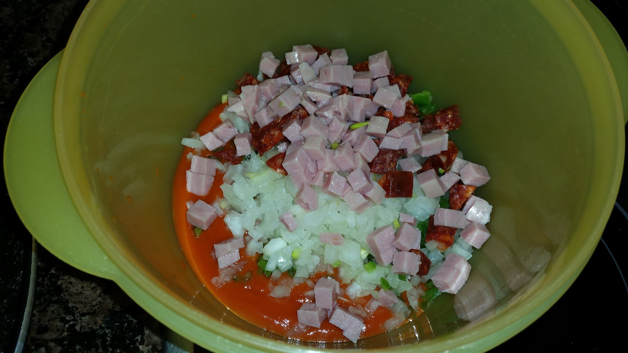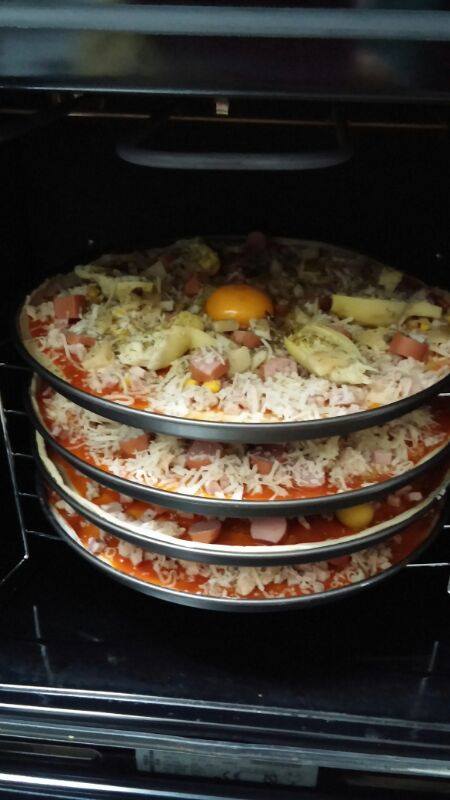 Lo primero que haremos es cortar a filetes las dos mitades de la pechuga, si no disponeis de ellas ya cortadas por el carnicero. Ponerlas al horno un ratito mientras se va preparando el picado de cebolla, pimiento, jamon de pavo y el chorizo o pasarlas un poco en una sarten, mas que nada para que se selle por fuera pero sin terminar de hacer. En un bol mezclamos el tomate con el resto de ingredientes y rellenamos los filetes a modo de pizza, por ultimo las cubrimos con queso rallado y listo para el horno hasta que se funda y dore el queso