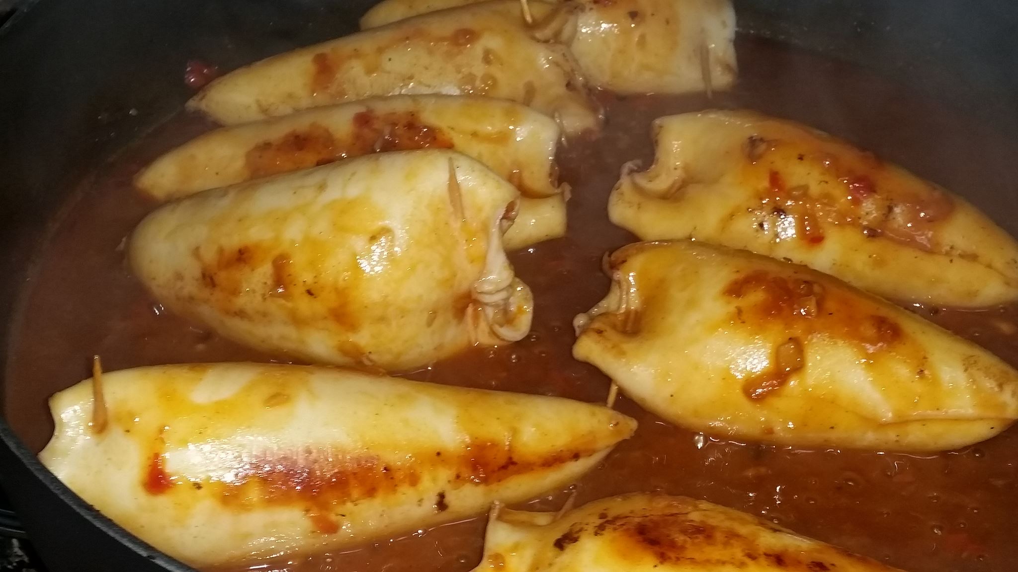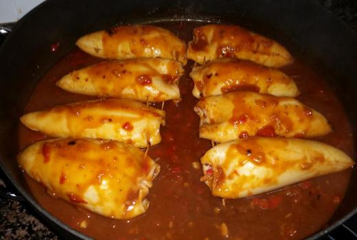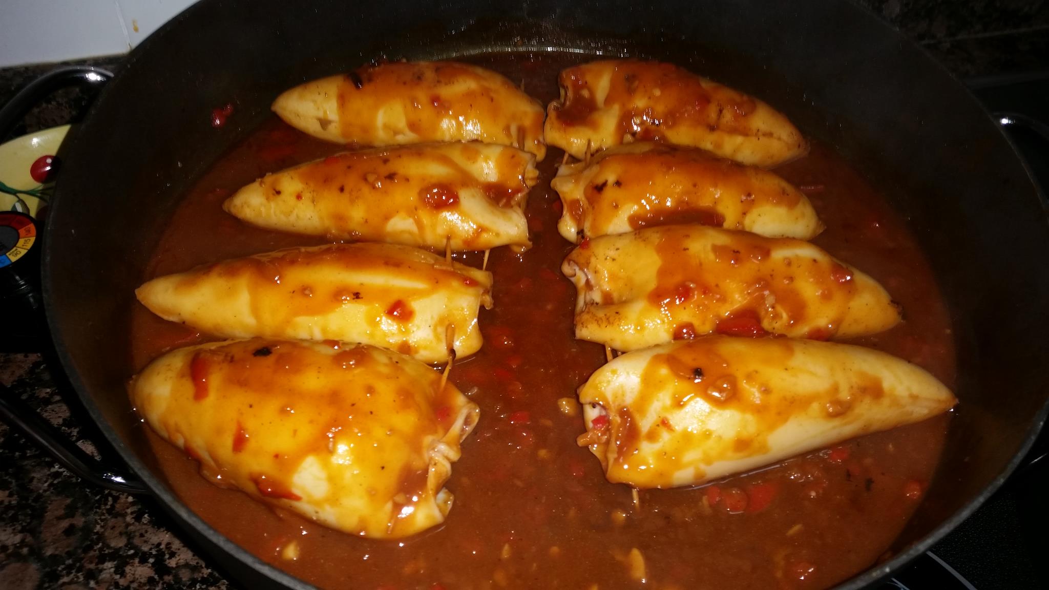 Calamares rellenos en salsa (sin gluten)
